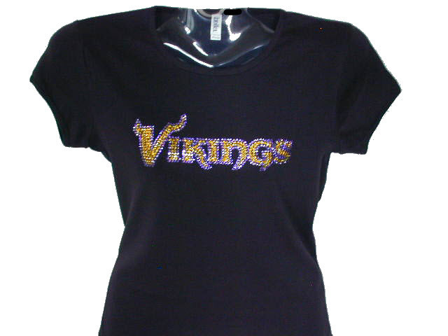 This sparkly Vikings Swarovski crystal shirt is made with genuine Swarovski crystals and is sure to make you stand out in the crowd. Available in your choice of size, style and color of shirt.